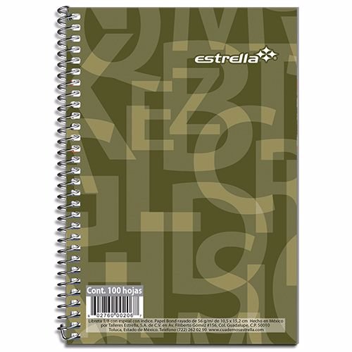LIBRETA 1/8 ESTRELLA CON INDICE, ESPIRAL RAYA 100 HOJAS