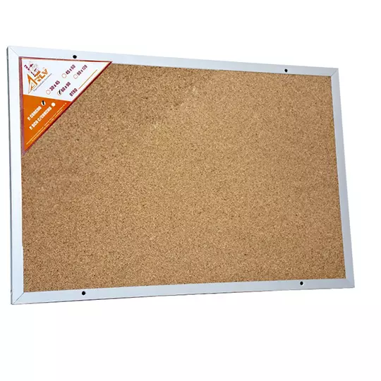 Fabricado con corcho 100% natural de 2 mm de grueso y enmarcado en canal de aluminio anodizado para mayor soporte, ideal para colocar notas, memorándums, etc.